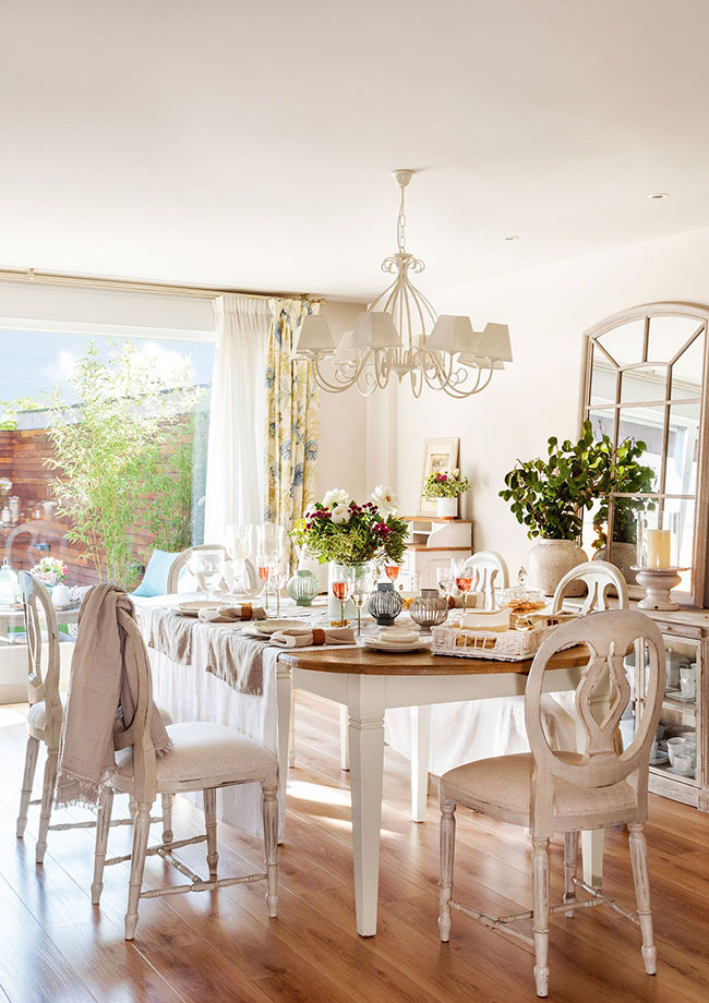 Pero cuidado con el número de colores. No se trata de invadir su respaldo con una colección multicolor que puede llegar a causar el efecto contrario. Sino de introducir pinceladas cromáticas que añadan vida para rejuvenecer la decoración. En el comedor, una forma sencilla y eficaz de actualizar sus muebles sin renunciar a ellos consiste en pintarlos de otro color, sustituir las tapicerías de las sillas e incluso customizar alguna mesa o consola con detalles decorativos muy de hoy.